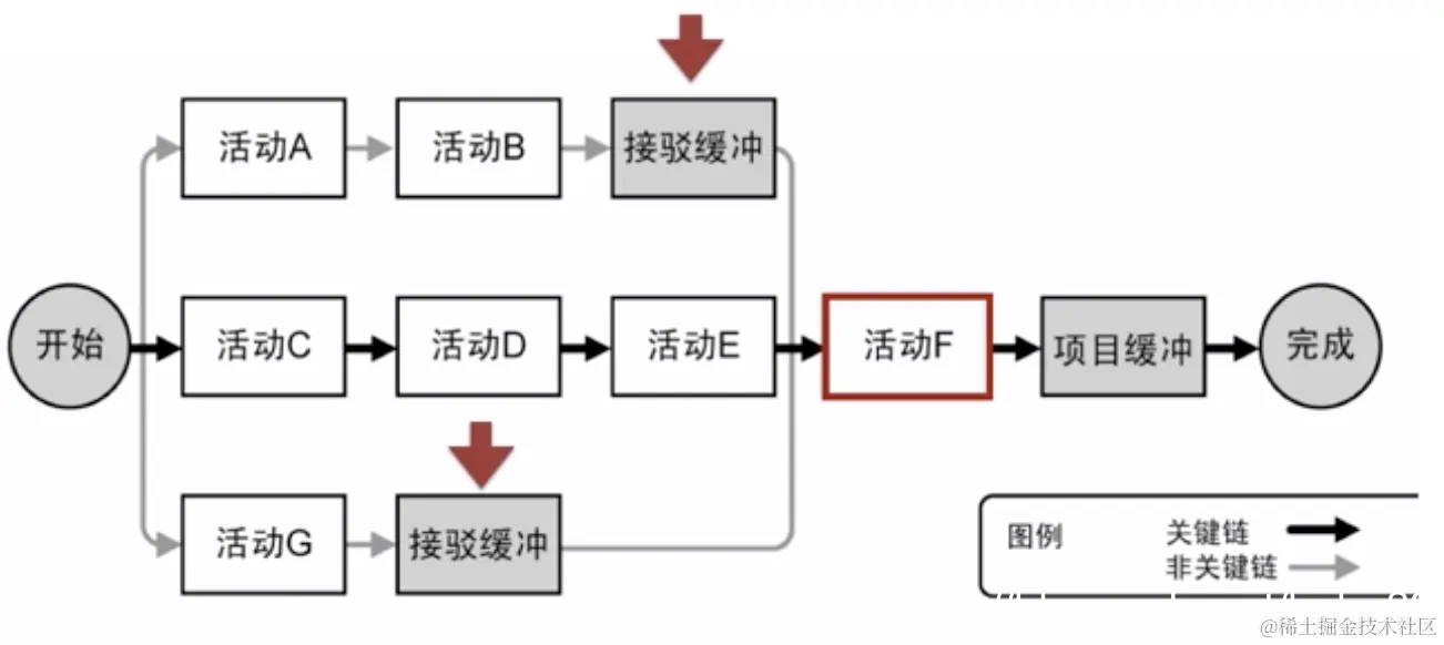关键链法初衷为了避免分配的安全时间浪费掉,不给额外分配资源,所有资源都留在应急池中,哪个活动有特殊情况再来申请。