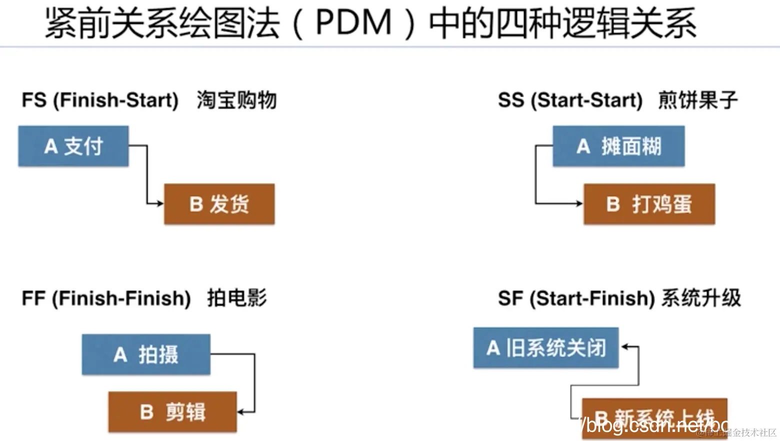 紧前关系绘图法(PDM)中的四种逻辑关系