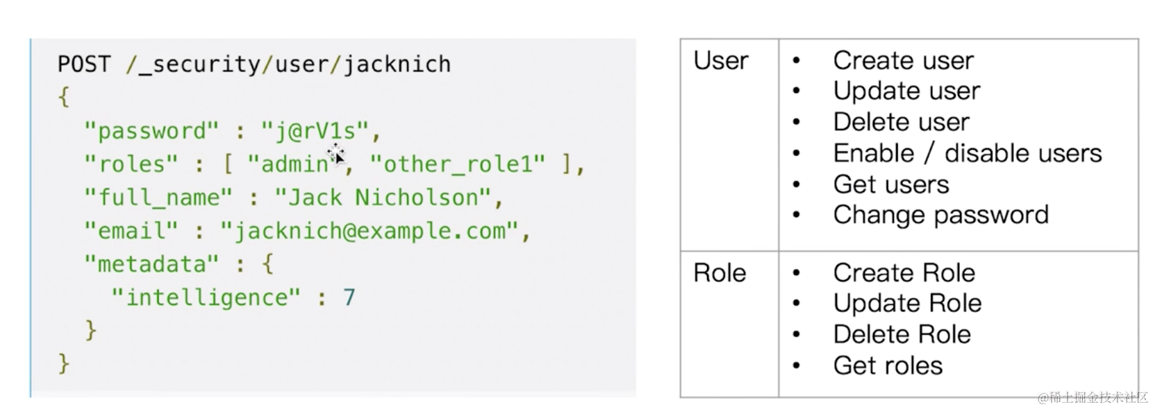 创建一个 Role,配置为某个索引只读权限 、创建一个用户,把用户加入 Role