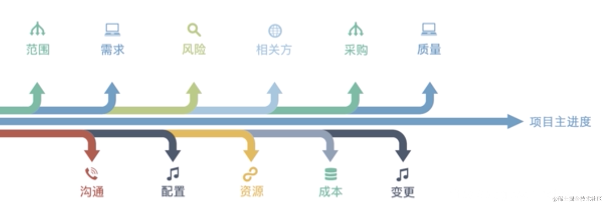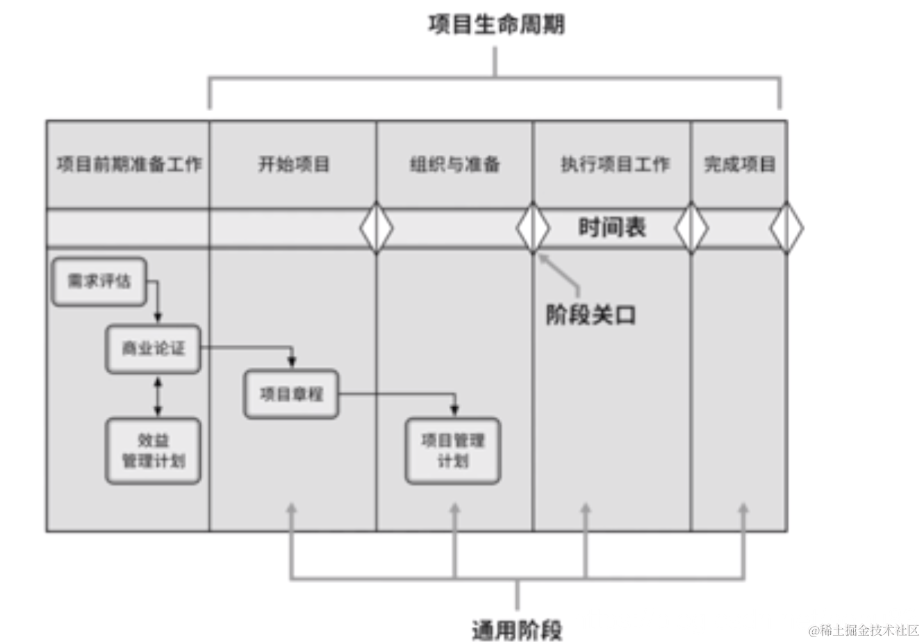 从哪个3个维度来看:时间维度:就是项目的生命周期。