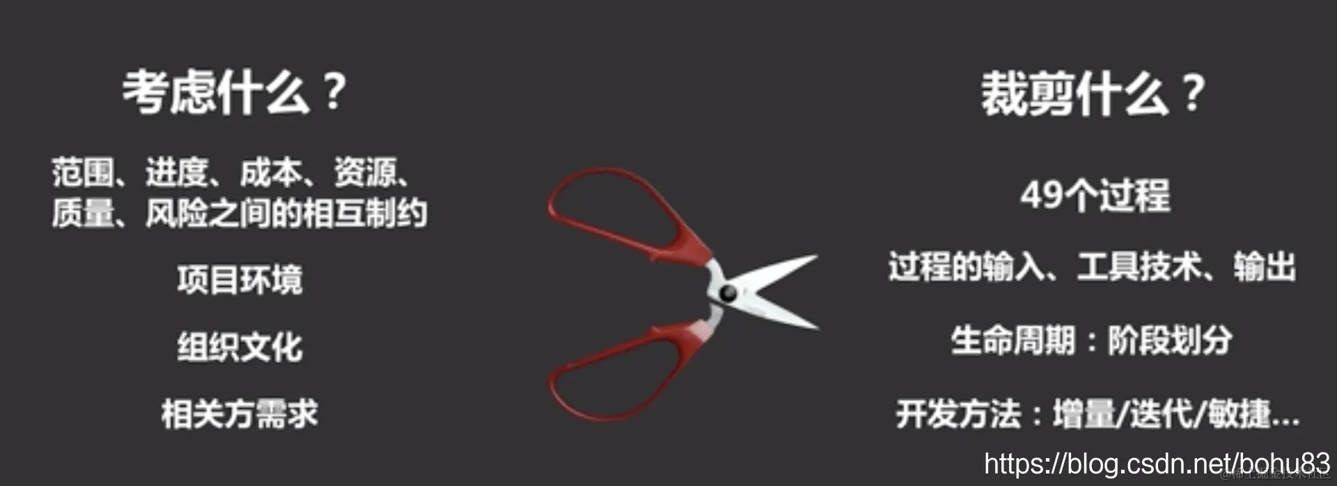 为了从名字上减少歧义,可以把通常的4个阶段:概念阶段、规划阶段、实施阶段、收尾阶段改为阶段1,2,3,4.每个阶段都要重复执行5个过程组,但不是5个过程组里面的过程全都执行,需要项目经理依据情况做裁剪。