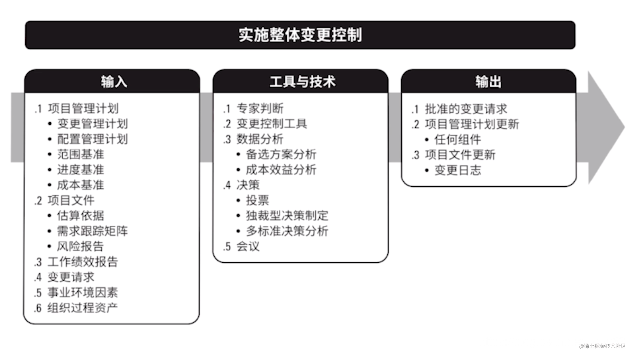 中间内容是49个项目管理过程,其中一个例子如下: