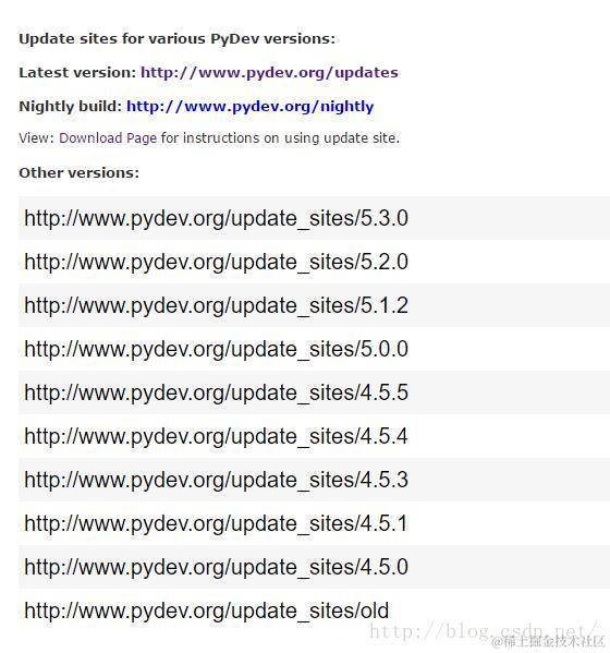 点击 www.pydev.org/update_site… ,可 查看PyDev的所有版本。