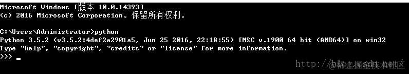 (5)验证Python环境是否已经部署到本机。从cmd进去,输入python验证是否安装成功。如果看到下图,表示安装成功了。