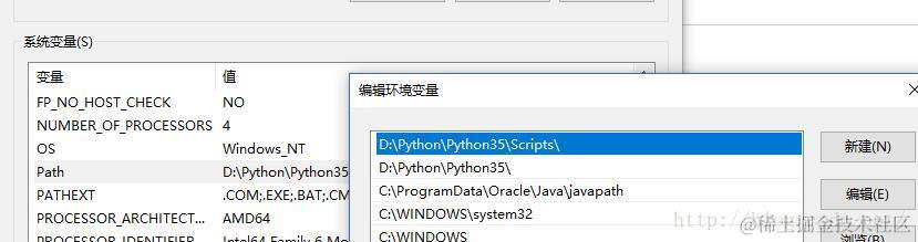 如果最终cmd没有出现以上,可能是环境变量设置出了问题,查看环境变量是否已经配置了Python路径。下面是笔者配置正常的环境变量(安装程序自动配置)。