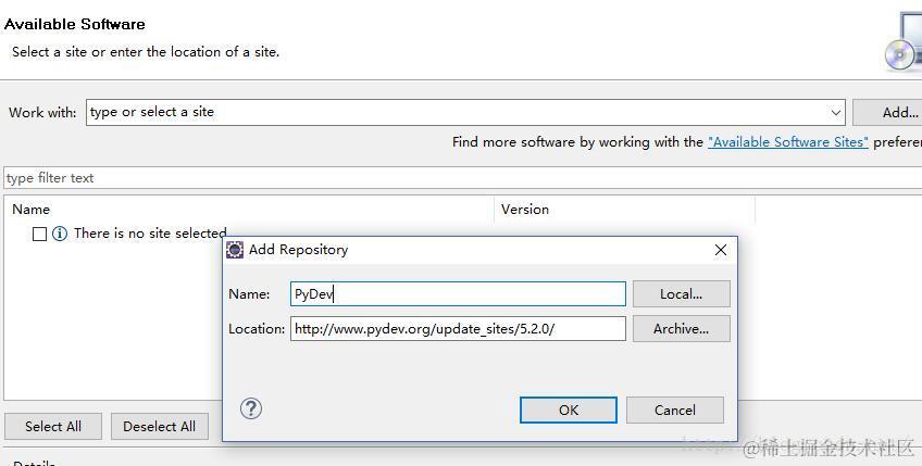 在Eclipse的help--install new software里,点击ADD名字输入PyDev,链接地址输入: www.pydev.org/update_site… (输入自己对应版本的地址),然后选择PyDev,另一个可以不选。安装完毕后,重启eclipse生效。