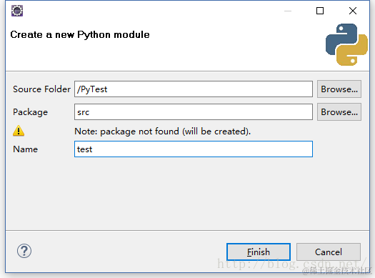(3)PyTest工程右键,New--PyDev Module,Package输入src,Name输入自己的名字,如test;