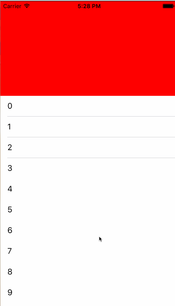 1、添加 view 到 tableview 上,设置 tableView 的 contentInset,这样,tableview 上部分就空出来了,刚好显示出 view。