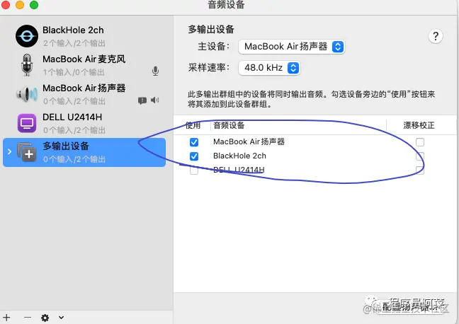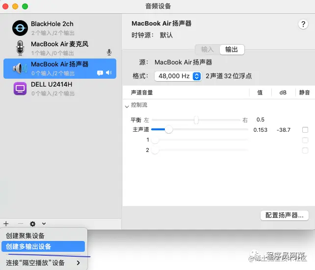 创建多输出设备,其他不用管。可以看到我们安装的那个black Hole 已经在上面了。