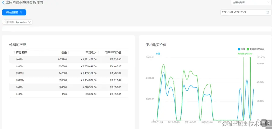 通过事件分析中的应用内购买事件,可以看出各个渠道来源用户在应用内的购买情况,帮助您分析出不同渠道用户付费转化能力的差异。点击事件分析,添加过滤器,选择需要查看的渠道,选择“应用内购买事件”即可查看详情。