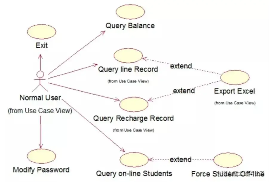 场景视图用于描述系统的参与者与功能用例间的关系,反映系统的最终需求和交互设计,通常由用例图表示。