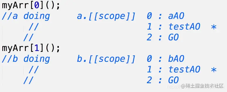 实际上我们利用闭包和立即执行函数就能解决这个问题,被放进数组里面的函数保存到外部执行的时候,在作用域链上找j的时候都会使用立即执行函数中j,而每次循环立即执行函数都会被销毁