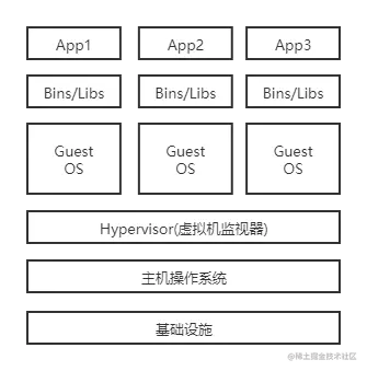 - 资源占用多:每个虚拟机都是完整的操作系统,需要分配资源,虚拟机数量增多,操作系统本身的消耗的资源也会增多。