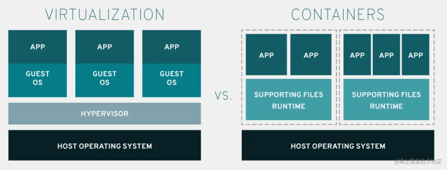 虚拟化技术是进行硬件虚拟后,在其上运行一个完整操作系统,应用进程运行于该操作系统之上; 虚拟机的容量有限,因为创建它们的虚拟机监控程序受制于计算机的有限资源。