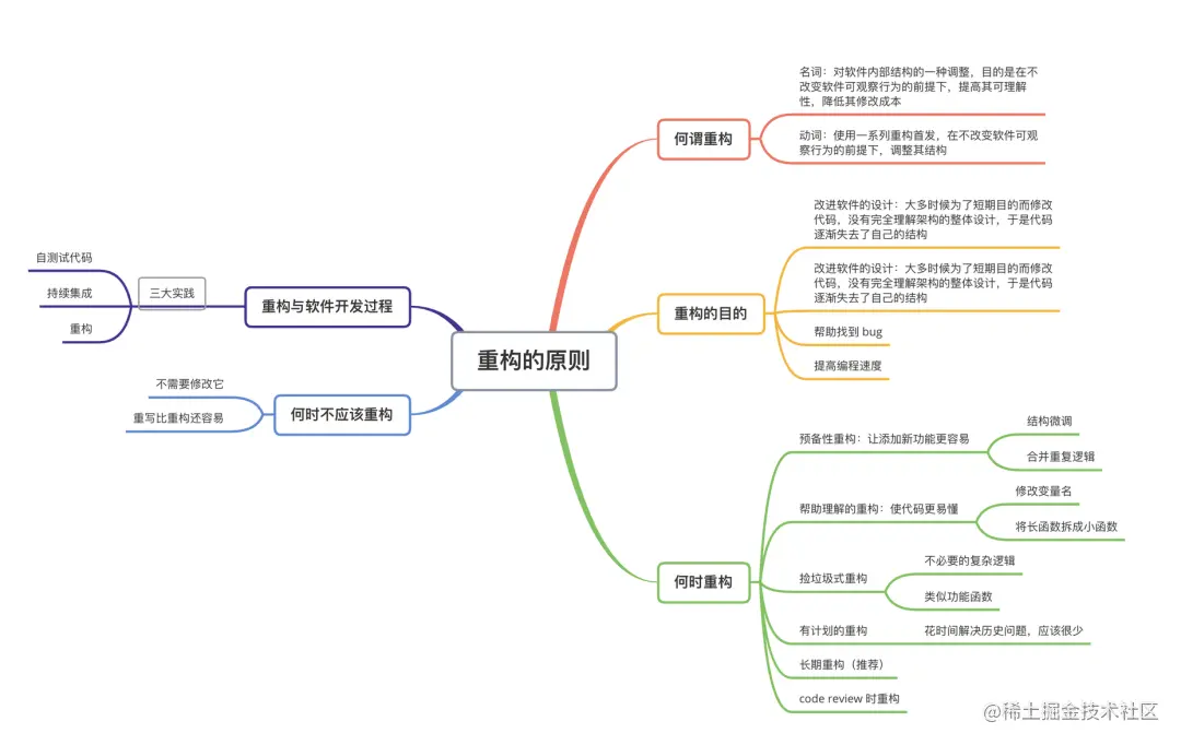 第二章 - 重构的原则:主要讲解了什么是重构,重构的目的,什么时候重构,什么时候不应该重构之类的问题,具体可见下图。
