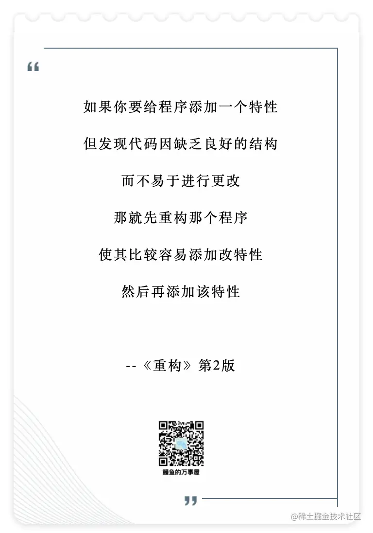 最近翻了翻放了很久还买了两本的《重构2》(参考封面图,JavaScript 编写的那本)。随手做了一些小总结和摘录分享一下,希望对大家有帮助。