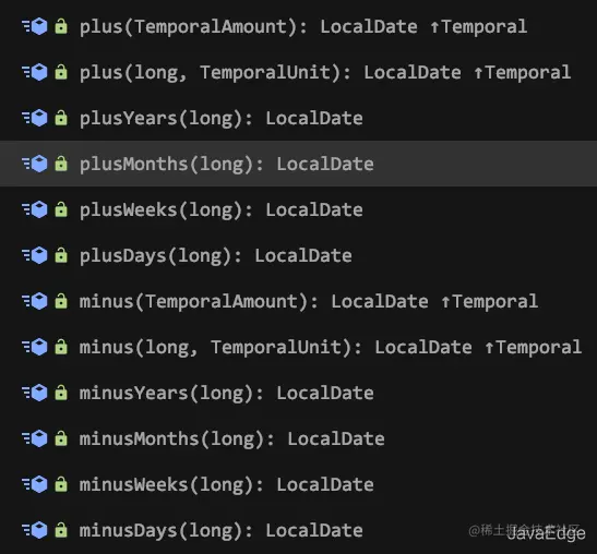 例如,2007-03-31加一个月会导致无效日期2007年4月31日。并非返回一个无效结果,而是 2007-04-30才是最后有效日期。调用实例的不可变性不会被该方法影响。