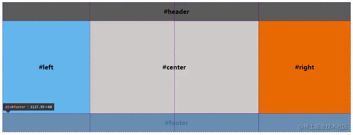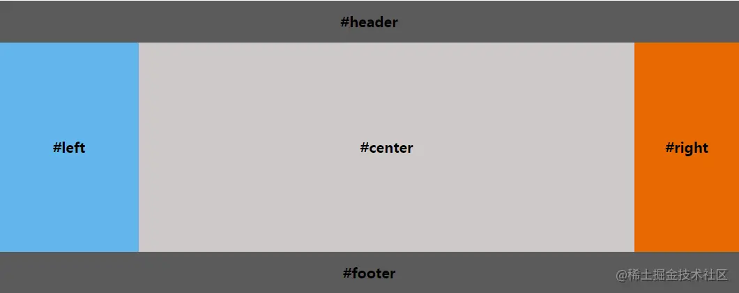 三栏布局两侧宽度固定不变,中间部分自动填充整个区域。