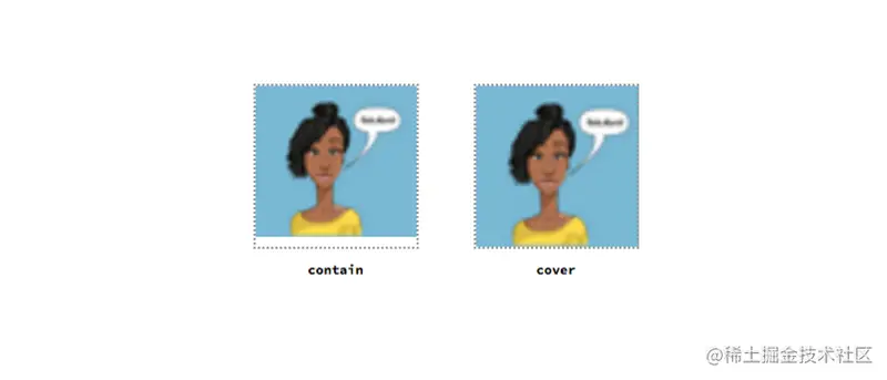 可用于此属性的关键字为“contains”和“cover”。contain将等比缩放图像到最大的大小。另一方面,cover将把图像缩放到尽可能小的尺寸,其中整个背景区域仍然被覆盖。