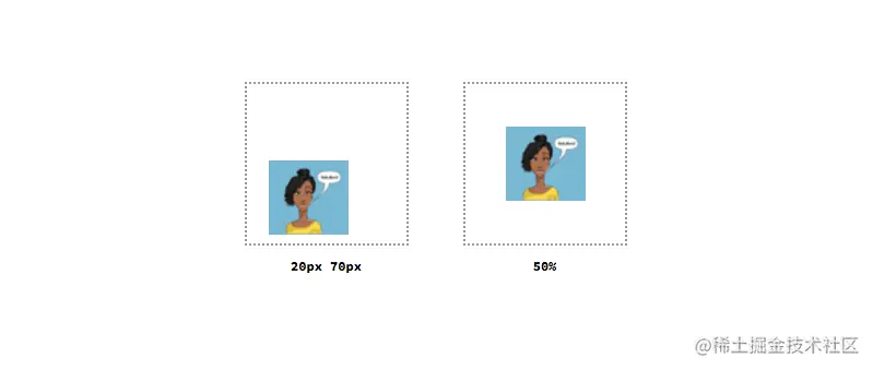对于长度和百分比,我们也可以指定沿x轴和y轴的位置。百分比值是按元素的大小计算的。