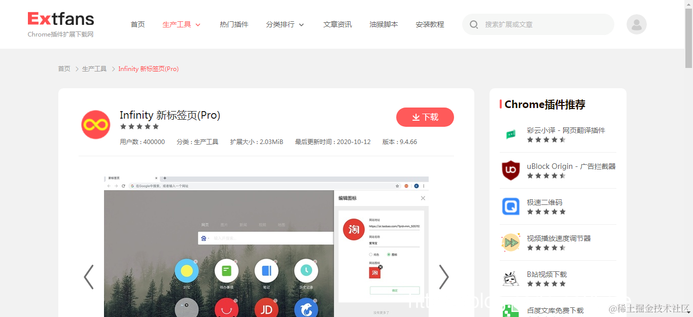 方法二:谷歌infinity插件下载:www.extfans.com/search/exte…(推荐)