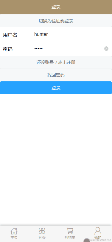 账号密码登录与后台管理系统的登录一样,若用户输入用户名密码登录成功,则将用户部分信息加密成token传至前端并保存至本地,每次通过将token值发送后端进行继续操作