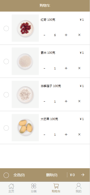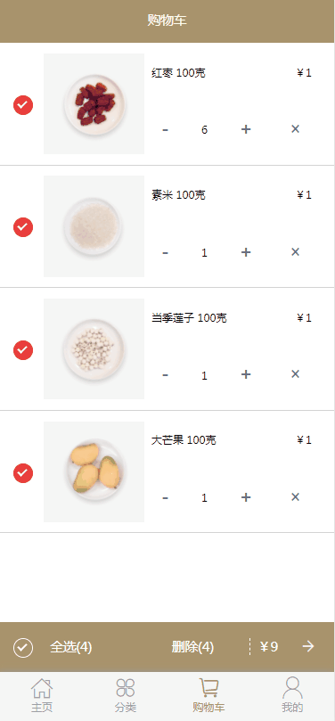 修改商品数量 删除单个商品 全选/反选 批量删除