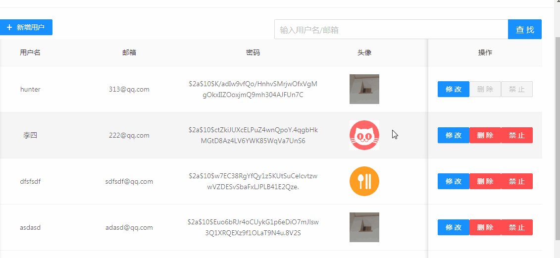 到现在为止,项目中的用户管理前端+服务端功能已全部实现,商品管理的功能实现与用户同理,但是字段名不同,不做说明,下一篇文章直接开始搭建商城前端及后端功能