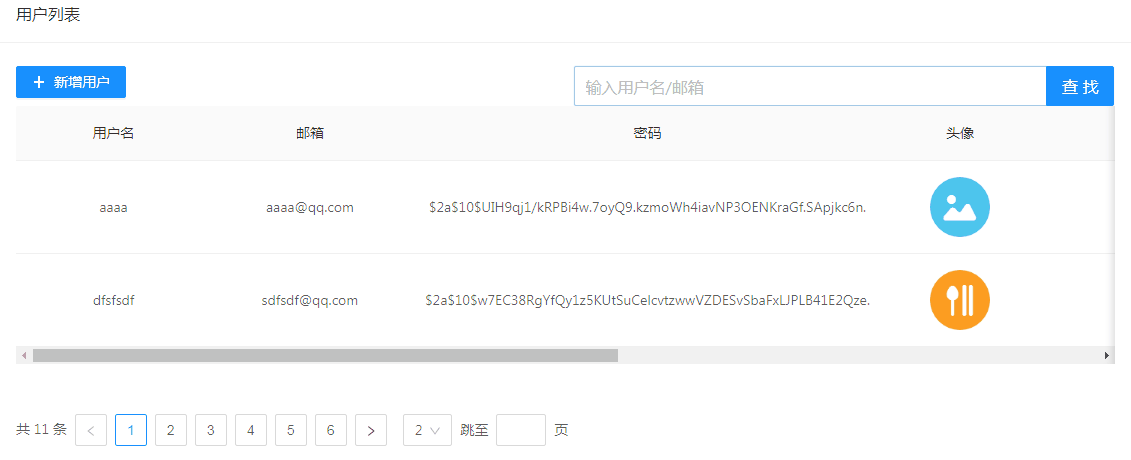 到现在为止,项目前后端功能已实现登录,token获取验证,上传头像,添加用户,这篇文章主要讲述实现前后端用户列表分页查找,模糊查询,用户列表渲染功能