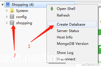 - 新建数据库,这里我新建的数据库名称是Shopping