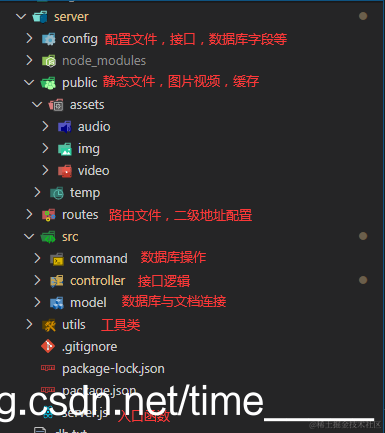 - 使用npm init -y初始化后端项目,并创建文件结构(如下图)