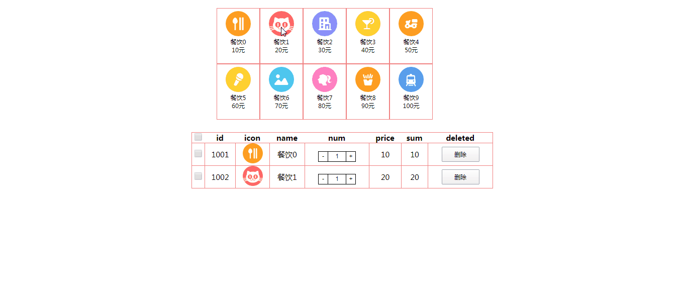 var obj = { //这里遵循对象顺序,先定义的属性排在前面,所以将选择框放在最前定义,总价和删除键放在最后