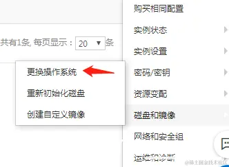 关闭服务器实例后,在服务器选项更多中选择更换系统