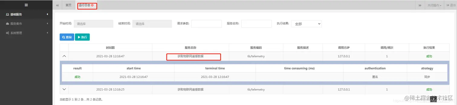 通过服务名称定位服务执行日志,以及查看日志详情