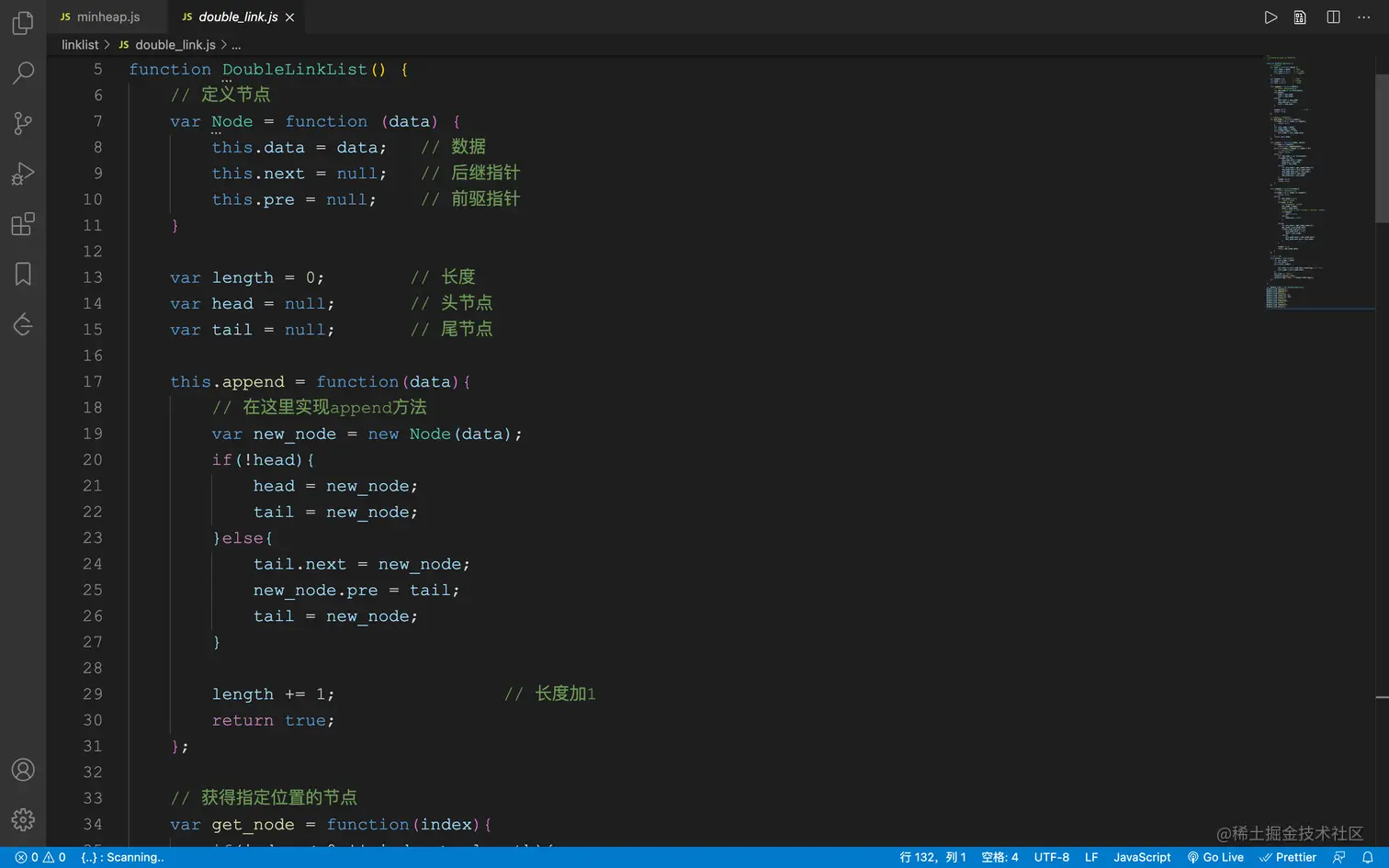 function LinkList(){ // 定义节点 var Node = function(data){ this.data = data; this.next = null; }