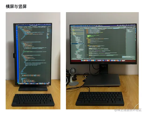 一般情况下,在使用IDEA编写后端JAVA程序时,我使用横屏,当需要在VSCode,集中编写大段前端代码,或需要做代码review时,我会将屏幕转换为竖屏,这让我能阅读更多代码,提高开发或代码审核效率。