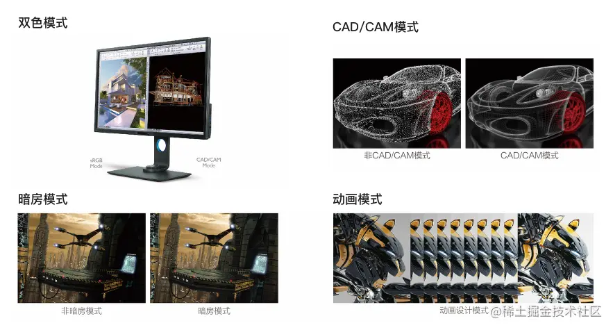 除了上面这些硬指标外,明基针对不同的使用场景,推出了多种色域以及专业模式可供选择,除了之前日常使用的低蓝光模式外,还有: