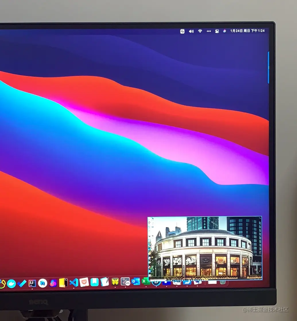 这样,我便实现了一个显示器连接两台主机,一台,专注于开发,而另一台则用于收发处理公司邮件。为了不错过重要的公司邮件,PD2700U显示器的另一特性又帮上了大忙,那便是PIP/PBP(画中画/双面画)功能。开启PIP后,我将公司笔记本的桌面以画中画的形式,显示在屏幕右下角。这样既不影响我专注编程,又可以监控公司邮件。在需要时,快速切换显示,进行处理。当然PD2700U支持根据自身的使用习惯来调整画中画的位置和大小。