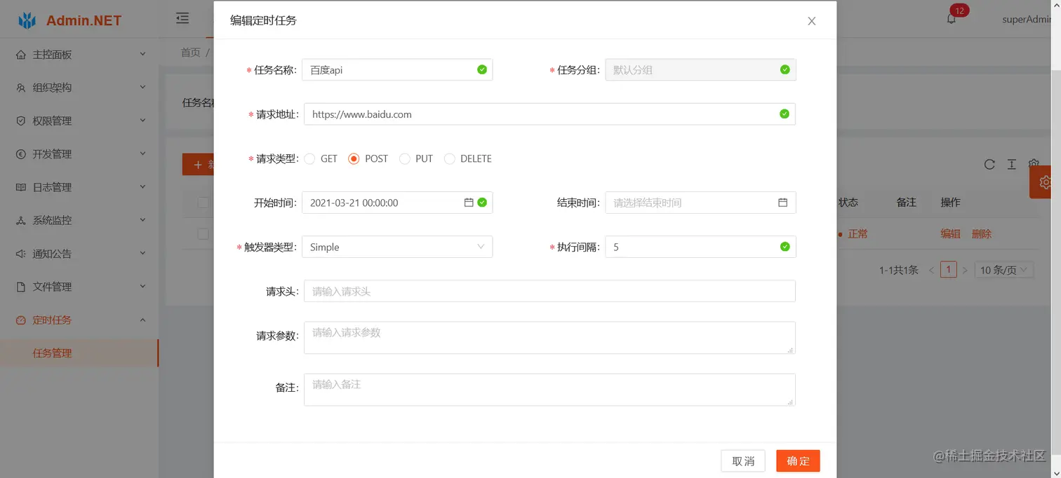 - 定时任务、定时任务的维护,通过cron表达式控制任务的执行频率。