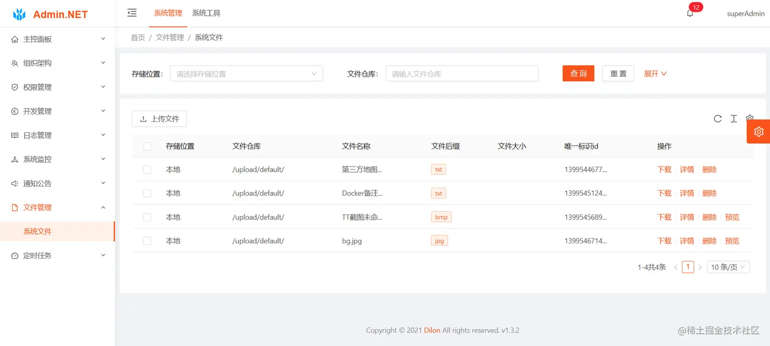 - 文件管理、文件的上传下载查看等操作,文件可使用本地存储,阿里云oss,腾讯cos接入,支持拓展。【目前只支持本地存储...】
