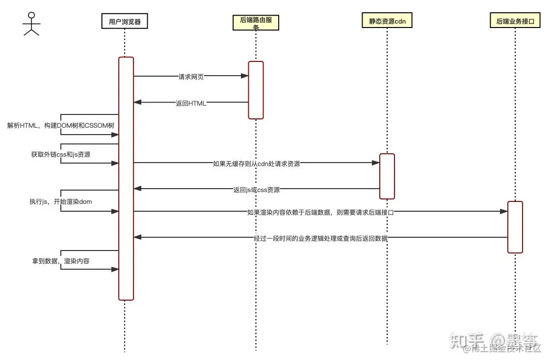 目前大多数前端应用其渲染方式主要还是客户端渲染,渲染的大致过程如下图所示: