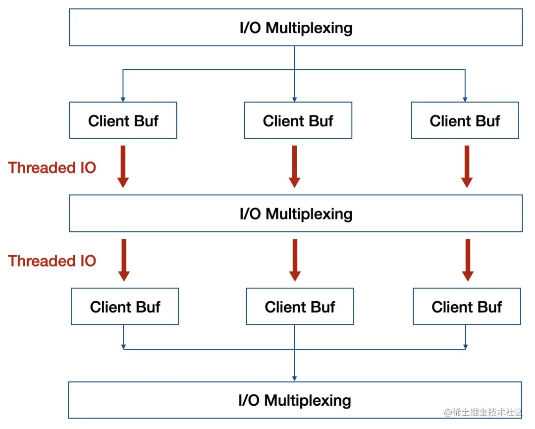 从上面实现上看,6.0版本的多线程并非彻底的多线程,I/O线程只能同时执行读或者同时执行写操作,期间事件处理线程一直处于等待状态,并非流水线模型,有很多轮训等待开销。