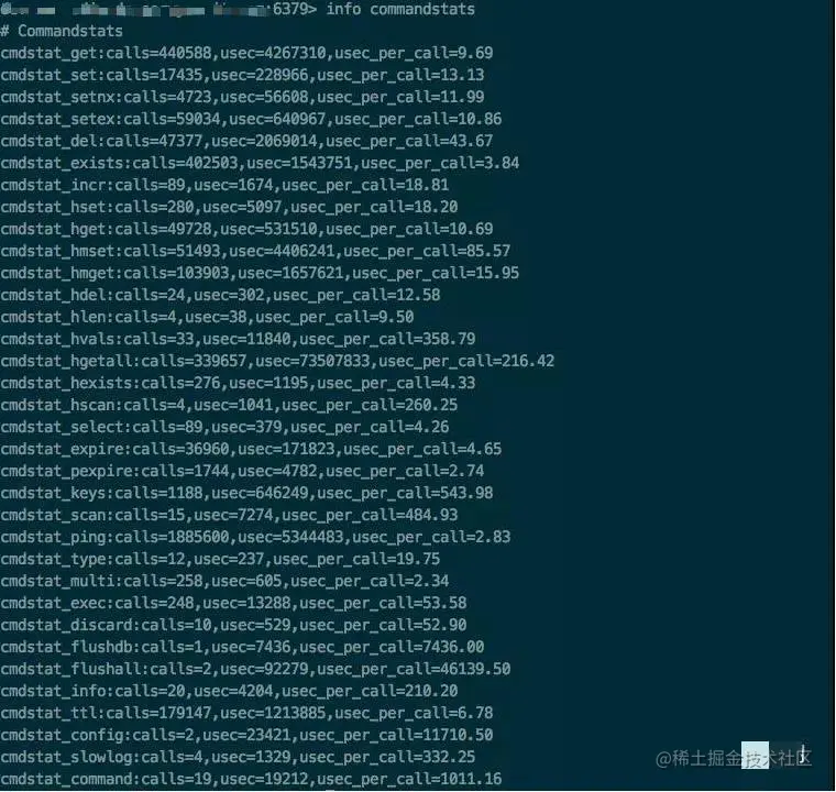 通过 info commandstats 可以查看 Redis 命令统计信息,其中命令格式是