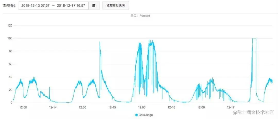 我们应用使用的是单节点的 32M 16GB 的阿里云 Redis,登录网页监控看性能监控,发现 CPU 使用情况飙升到100%!!!