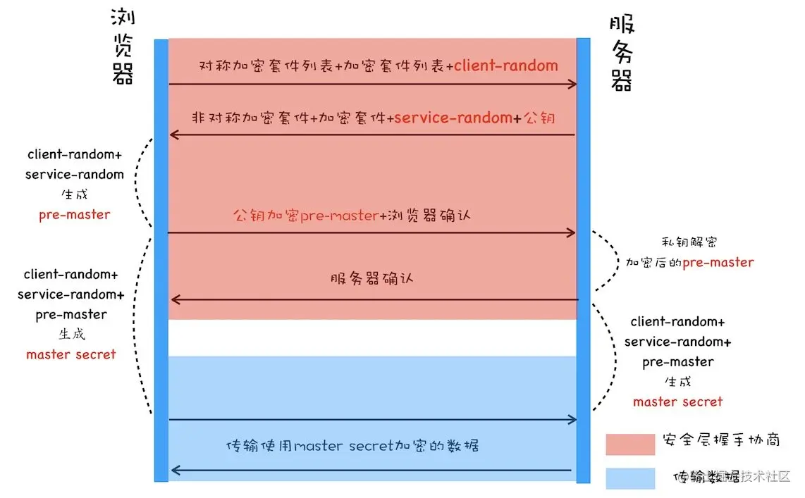 - pre-master 是经过公钥加密之后传输的,所以黑客无法获取到 pre-master,这样黑客就无法生成密钥,也就保证了黑客无法破解传输过程中的数据了。
