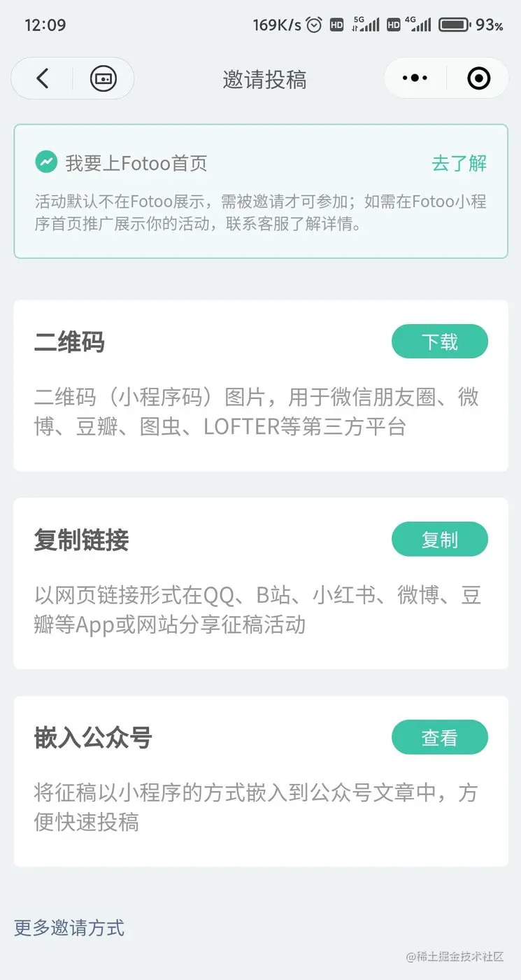 组织者在【fotoo征集一下】创建完活动后,可以通过多种方式将活动分享给参与者,参与者直接上传作品;