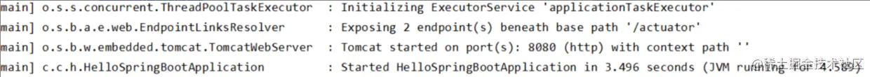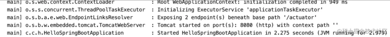 接下来,我们直接运行 HelloSpringBootApplication 类,这样一个 Spring Boot 项目就启动成功了。