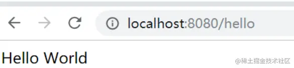 hello() 方法非常简单,返回一个字符串“Hello World”。@RequestMapping 表明这个方法是一个请求映射。