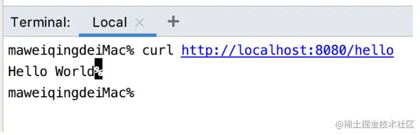 这时候,可以直接在 IDEA 的 Terminal 面板中测试该项目是否启动成功。