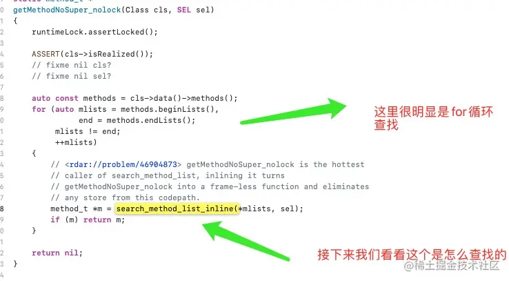 接着就在MethodTableLookup里面找,也就是方法列表里面找,因为缓存没找到,我们继续看实现